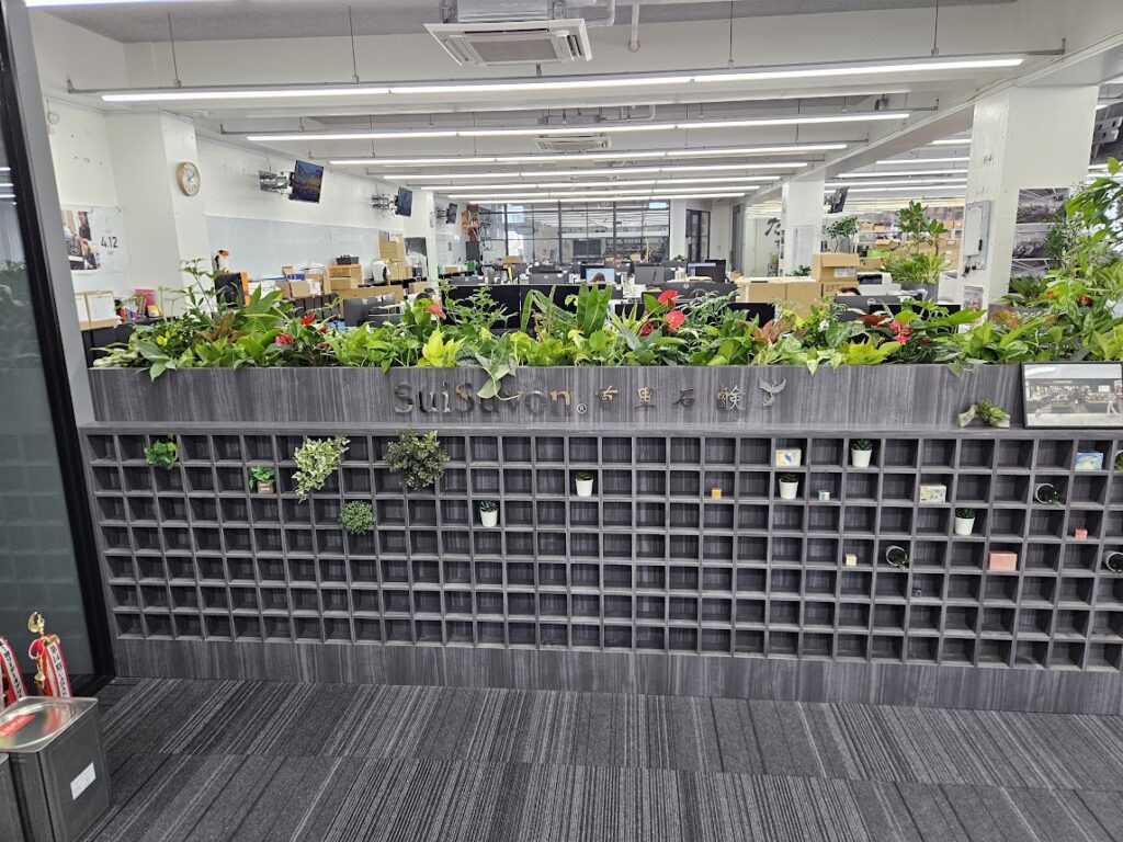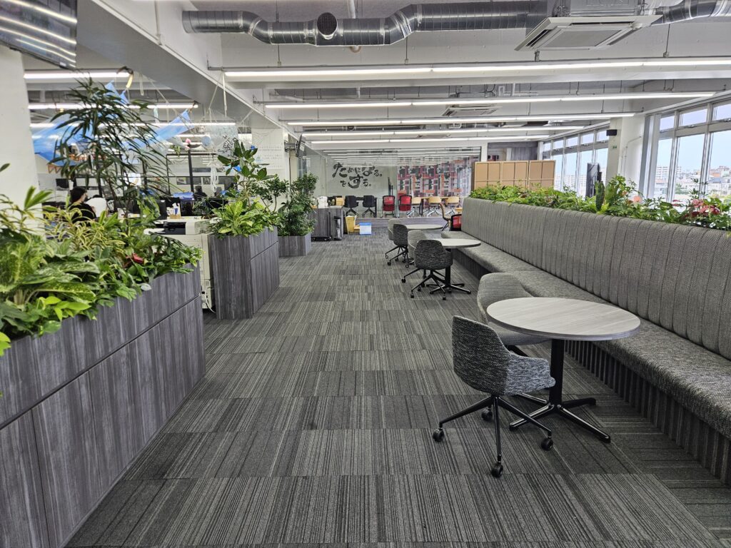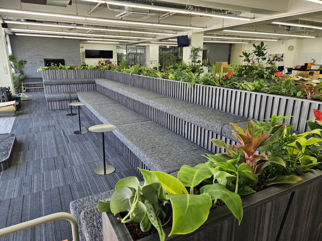 ㈱首里石鹸様の本社リニューアルに伴い、植栽もこれまでの置き型レンタルグリーンからフロア各所にたくさん植え込みスペースを設けていただき、