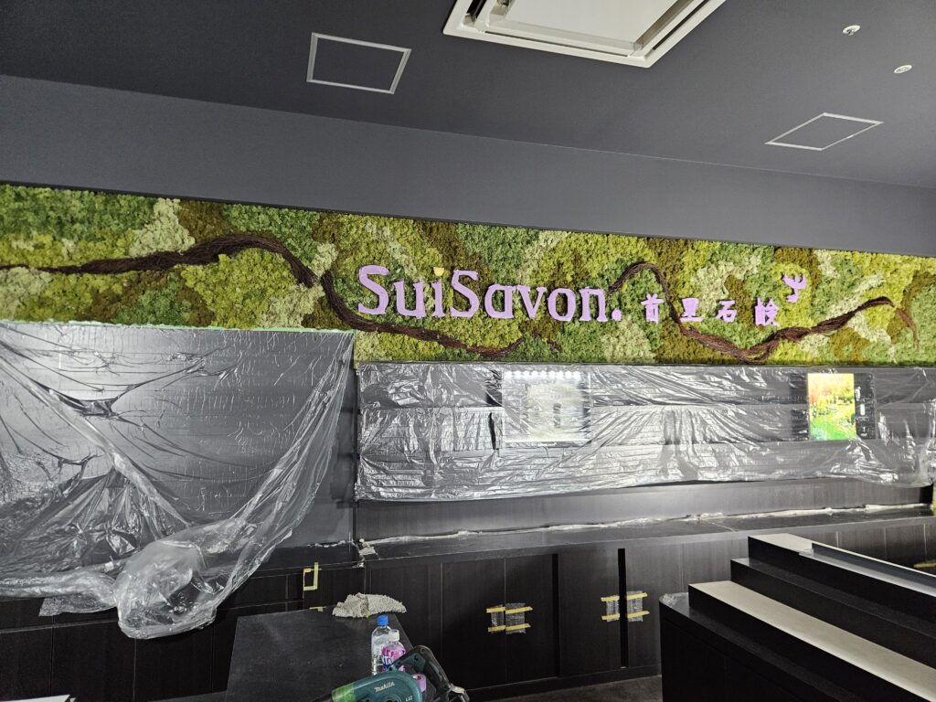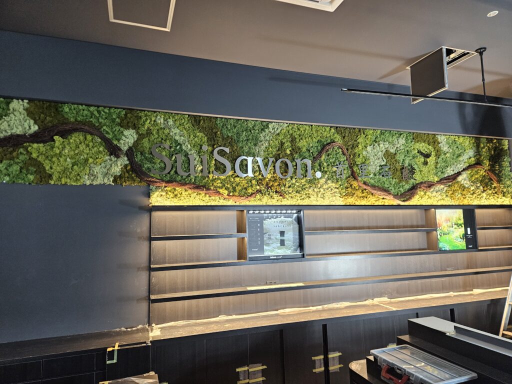 首里石鹸流山おおたかの森S.C.店さんにてアイスランドモスを使ったグリーンウォール製作のご依頼をいただき施工させていただきました。